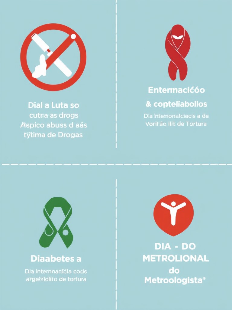 O dia 26 de junho é um marco no calendário, reunindo quatro importantes datas que nos convidam à reflexão e à ação. Neste dia, celebramos o Dia Internacional contra o Abuso e Tráfico Ilícito de Drogas, o Dia Internacional de Apoio às Vítimas de Tortura, o Dia Nacional do Diabetes e o Dia do Metrologista. Cada uma dessas datas carrega uma história e um significado únicos, que merecem ser explorados e compreendidos.