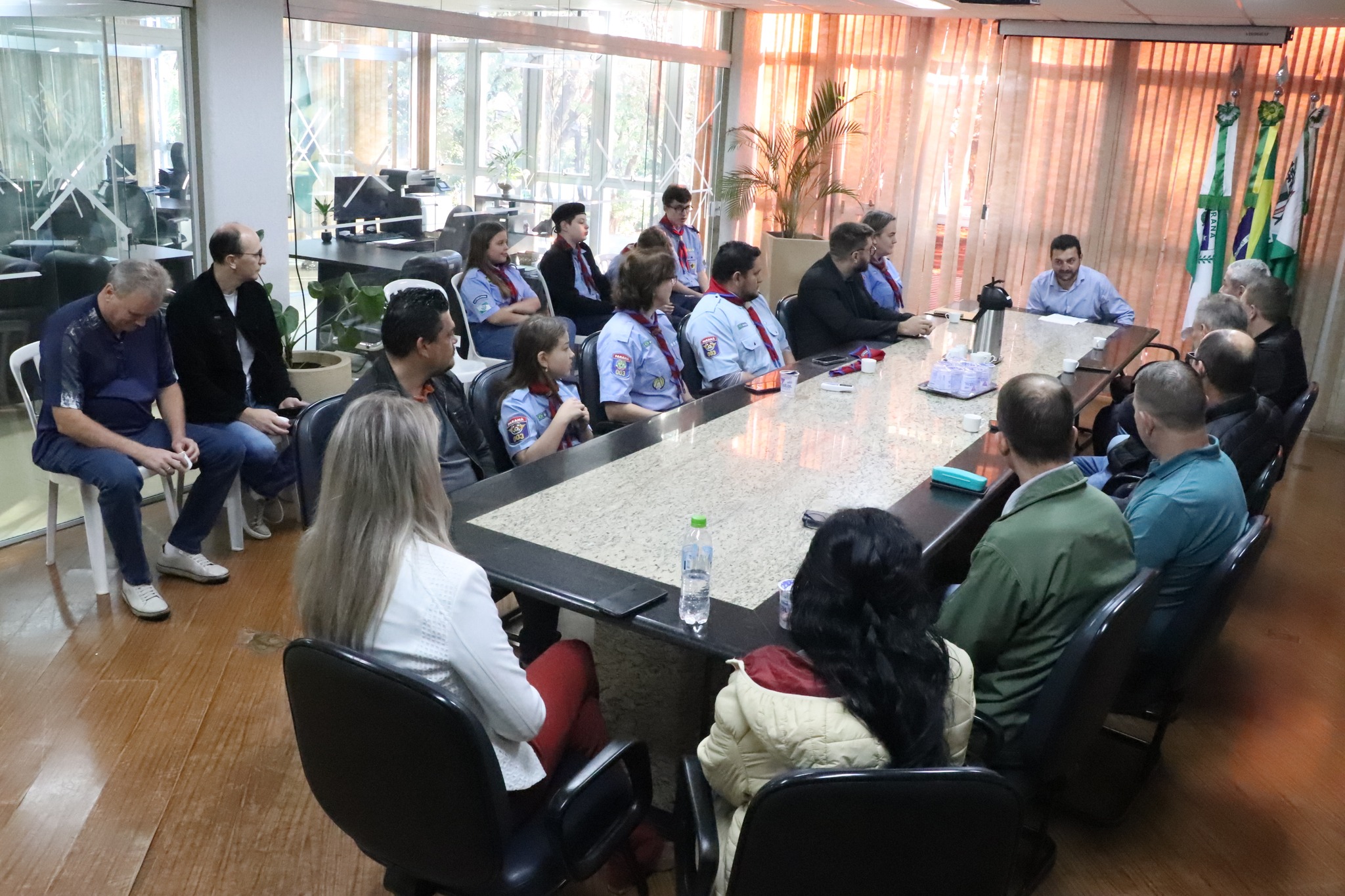 Durante a visita, os escoteiros também agradeceram ao prefeito pelo sancionamento da lei que reconhece o Grupo Escoteiro Luterano Harpia como entidade de utilidade pública.