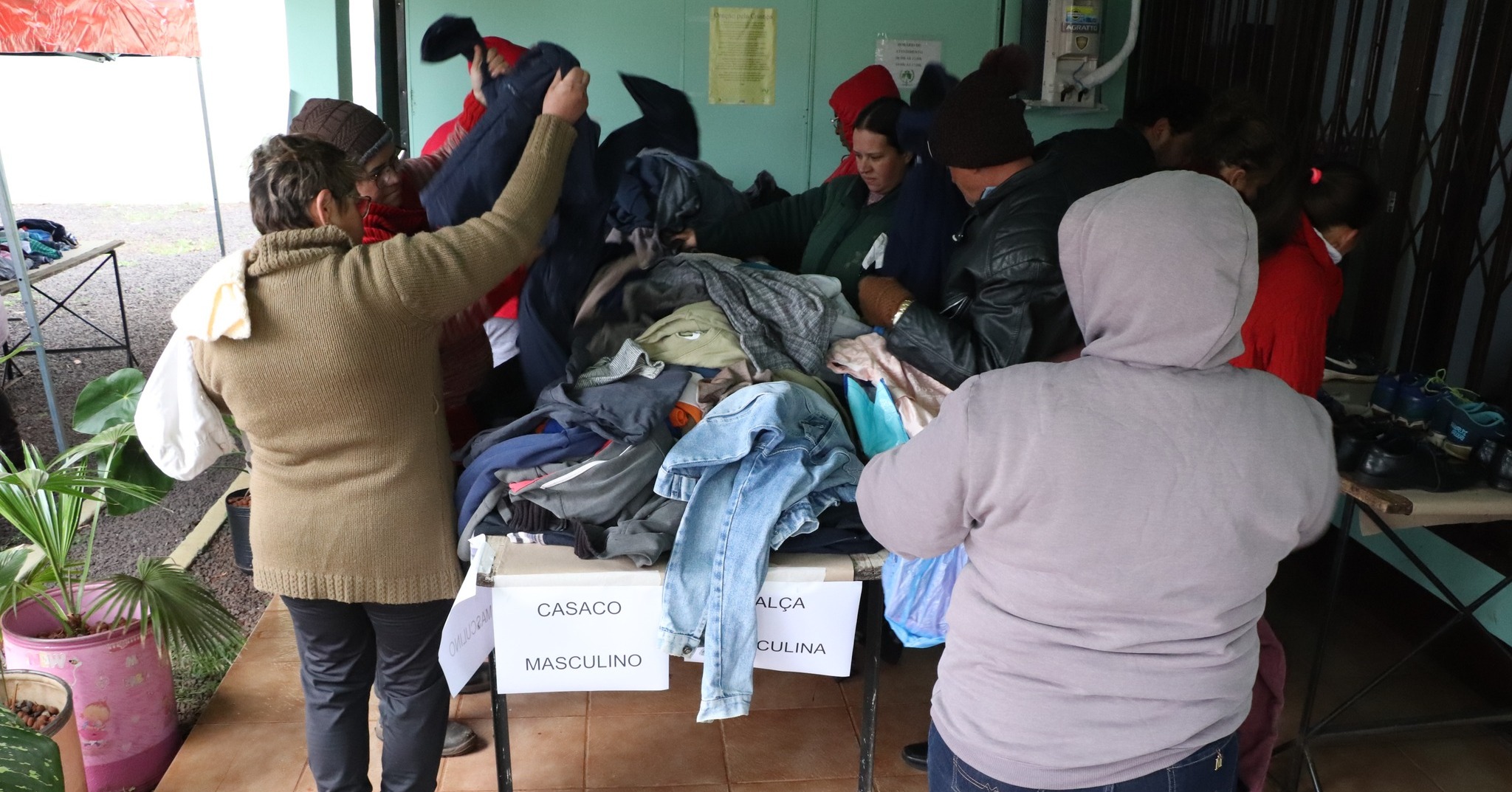 A equipe da Secretaria de Assistência Social também está levando kits de roupas diretamente para bairros e distritos. Somente nesta semana, os kits chegaram às escolas municipais Ana Paula, Osvino Weirich e Novo Três Passos.