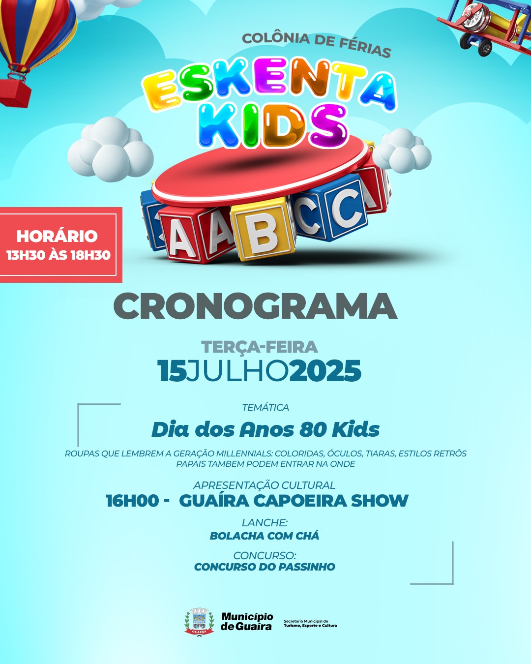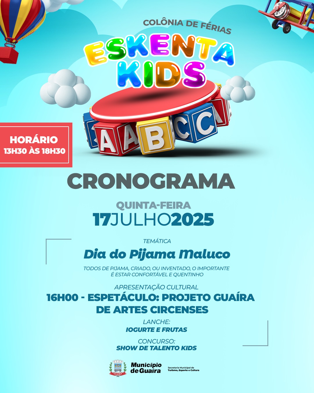 Mais do que diversão, o Eskenta Kids Municipal representa uma ação pública de inclusão e cuidado durante o recesso escolar. Organizado pela Diretoria de Esporte e Lazer de Guaíra, com apoio da Secretaria de Turismo, Esporte e Cultura, Secretaria de Educação, Assistência Social e diversos parceiros, o evento reforça o compromisso com uma infância mais feliz e participativa.