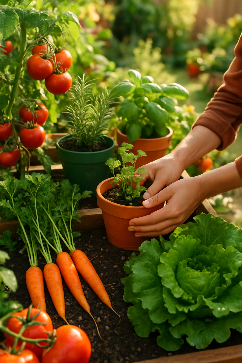 Ideais para apartamentos, varandas e pequenos quintais. Vasos de diferentes tamanhos e materiais (cerâmica, plástico, fibra de coco) podem abrigar ervas, temperos, folhosas e até alguns legumes menores, como tomates cereja e pimentas. Certifique-se de que os vasos tenham furos para drenagem! 🪴