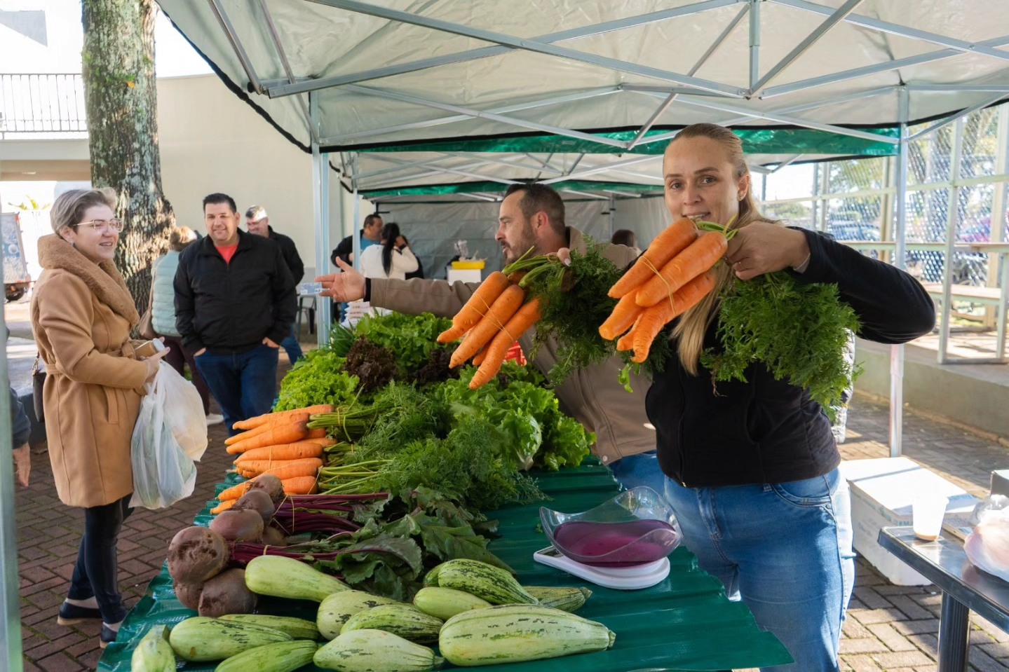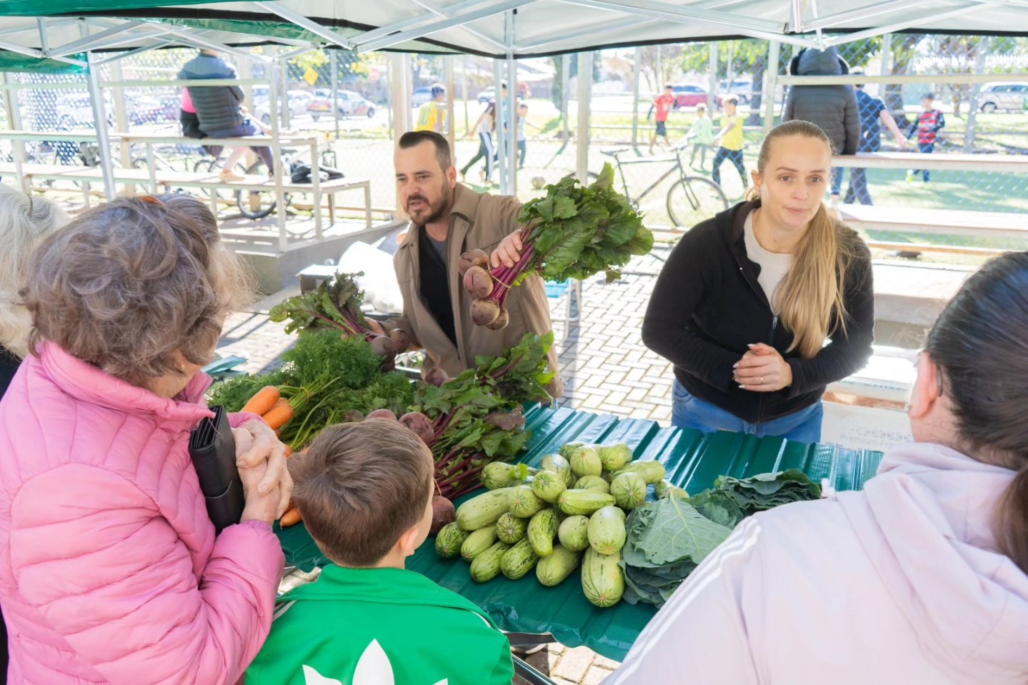 A Praça Silvino Dal Bó, em frente à Igreja Matriz de Santa Terezinha de Itaipu, está repleta de cores, aromas e sabores neste sábado. É a oportunidade perfeita para adquirir produtos fresquinhos, direto do campo para a sua mesa, enquanto você apoia os agricultores locais e fortalece a economia da cidade.