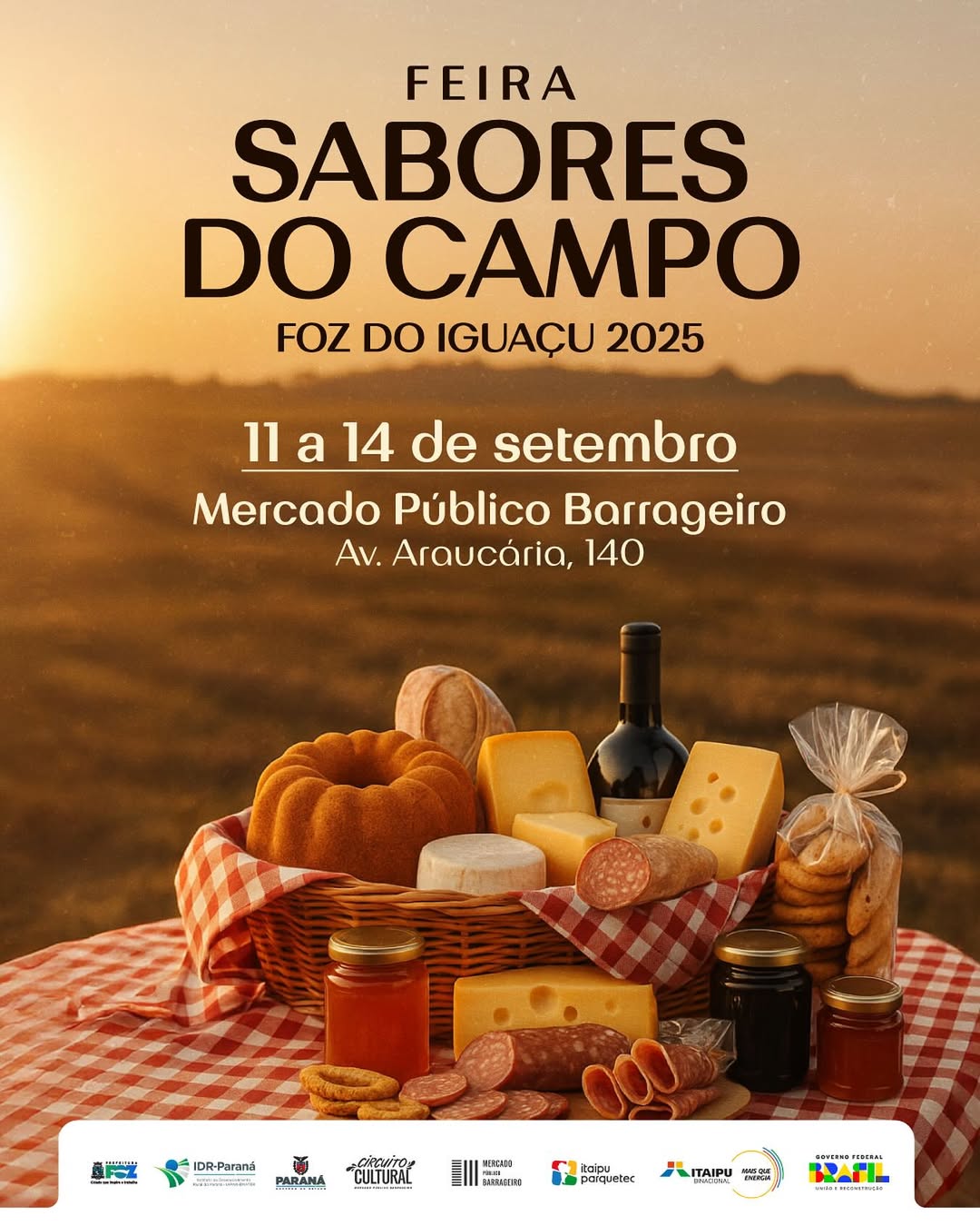 De 11 a 14 de setembro, Foz do Iguaçu será palco da Feira Sabores do Campo, evento que reúne o melhor da produção artesanal do campo. A feira acontecerá no Mercado Público Barrageiro e promete oferecer uma verdadeira viagem gastronômica pela agricultura familiar da região.