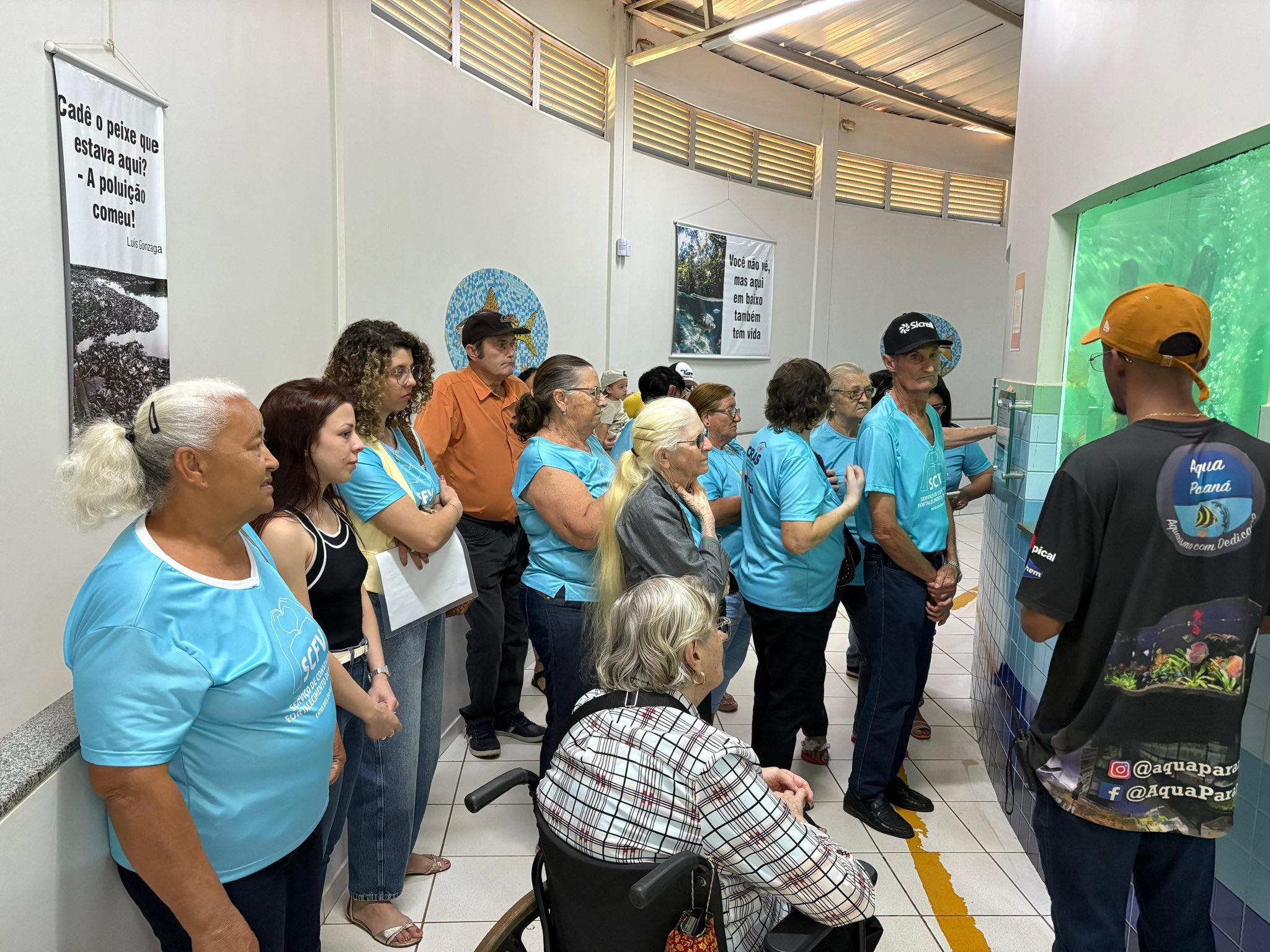 Em Toledo, o grupo conheceu o Aquário Municipal, onde pôde observar de perto as mais variadas espécies de peixes e aprender sobre a biodiversidade aquática da região. A visita despertou curiosidade e encantamento entre os participantes, que interagiram e trocaram experiências sobre o tema.