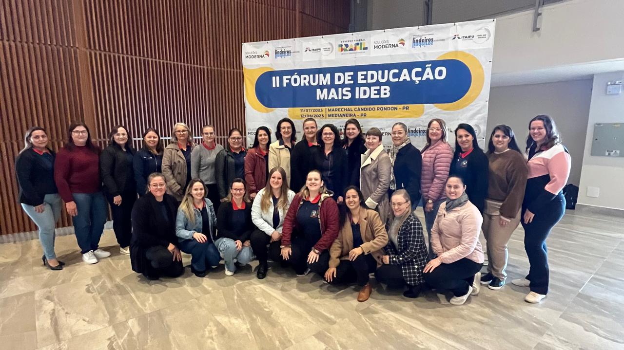 Medianeira (PR) – Na manhã desta terça-feira (12), aconteceu a 2ª etapa do II Fórum Mais Ideb, reunindo educadores de diversos municípios no Lar Centro de Eventos. Um grupo de professores de Missal, acompanhado da Secretária de Educação, Cultura e Esporte, Clarice Maria Grings Friedrich, marcou presença no encontro.