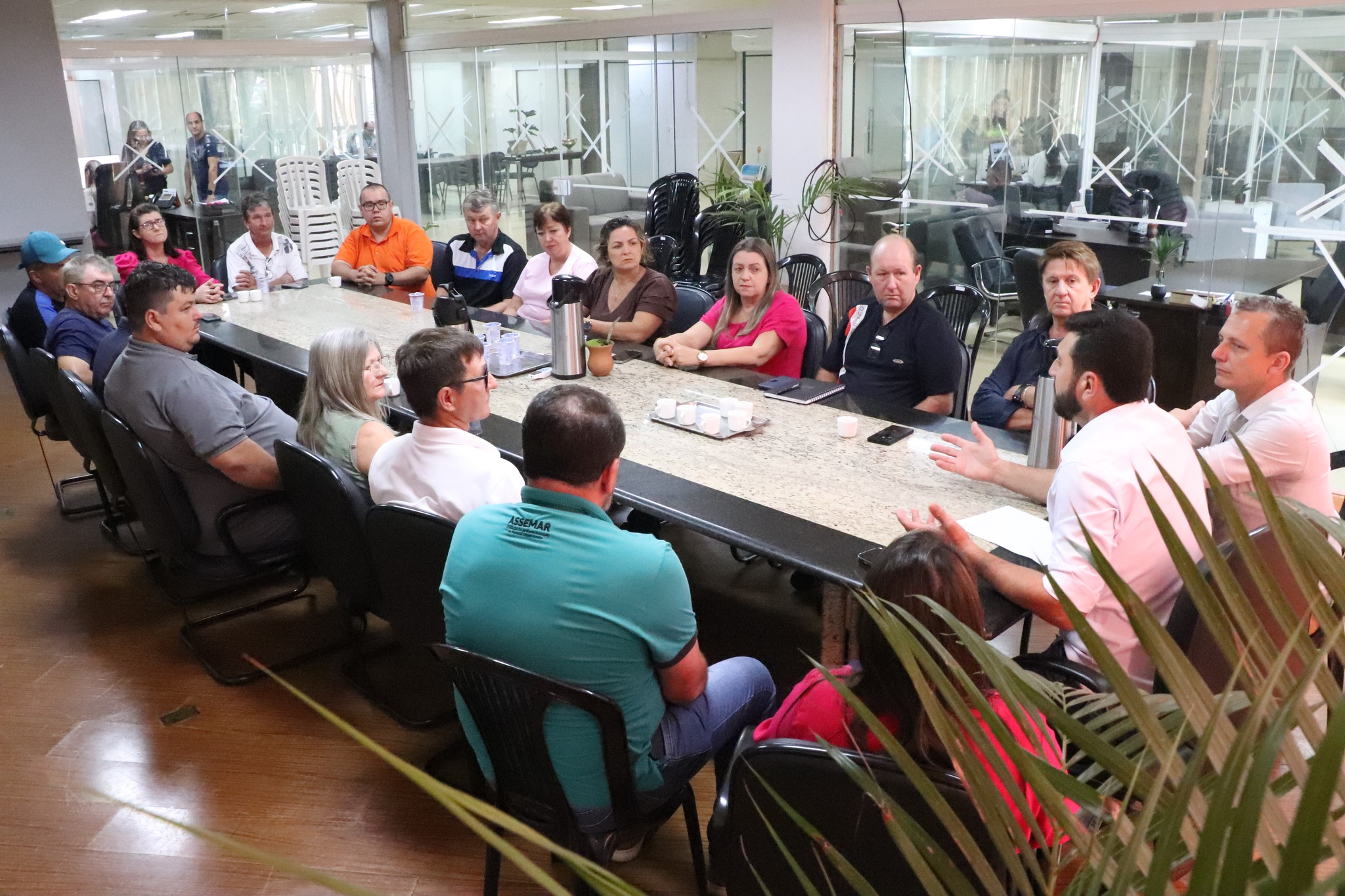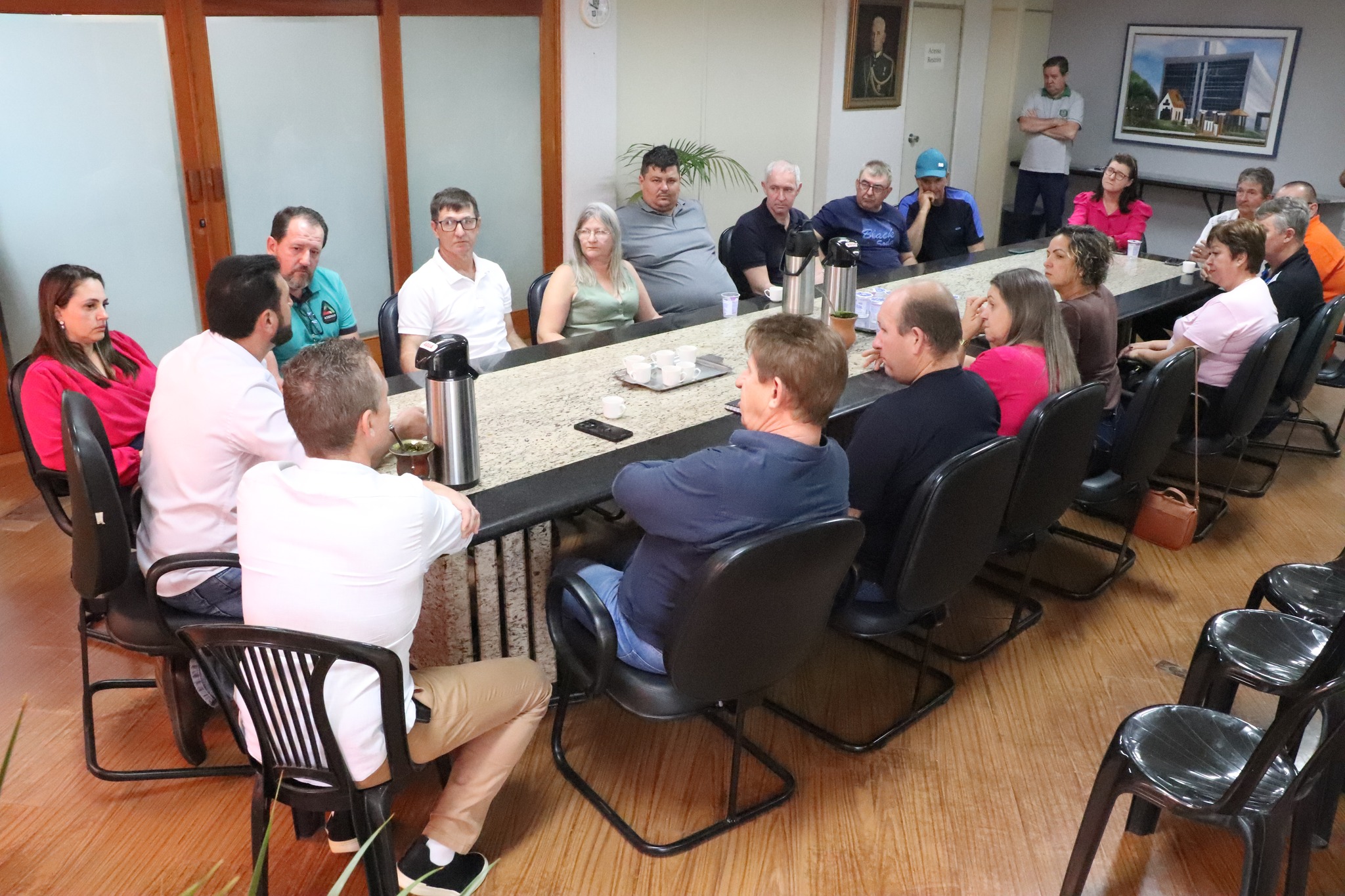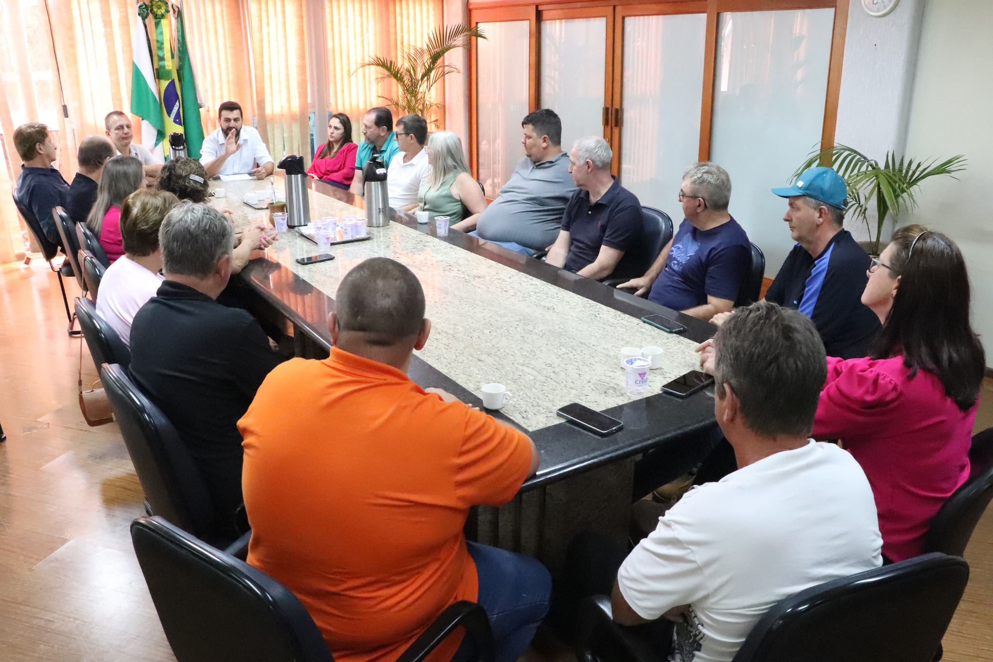 O prefeito Adriano Backes e o vice-prefeito Vanderlei Sauer receberam o presidente da associação, Cladimir Schiavini, e demais membros da comunidade. Também participaram do encontro a secretária de Assistência Social e primeira-dama Andria Backes, além de secretários municipais, diretores, o vereador Cleiton Freitag (Gordinho do Suco) e o ex-vereador Nilson Hachmann, autor do projeto de lei que incluiu a festividade no calendário oficial do município.