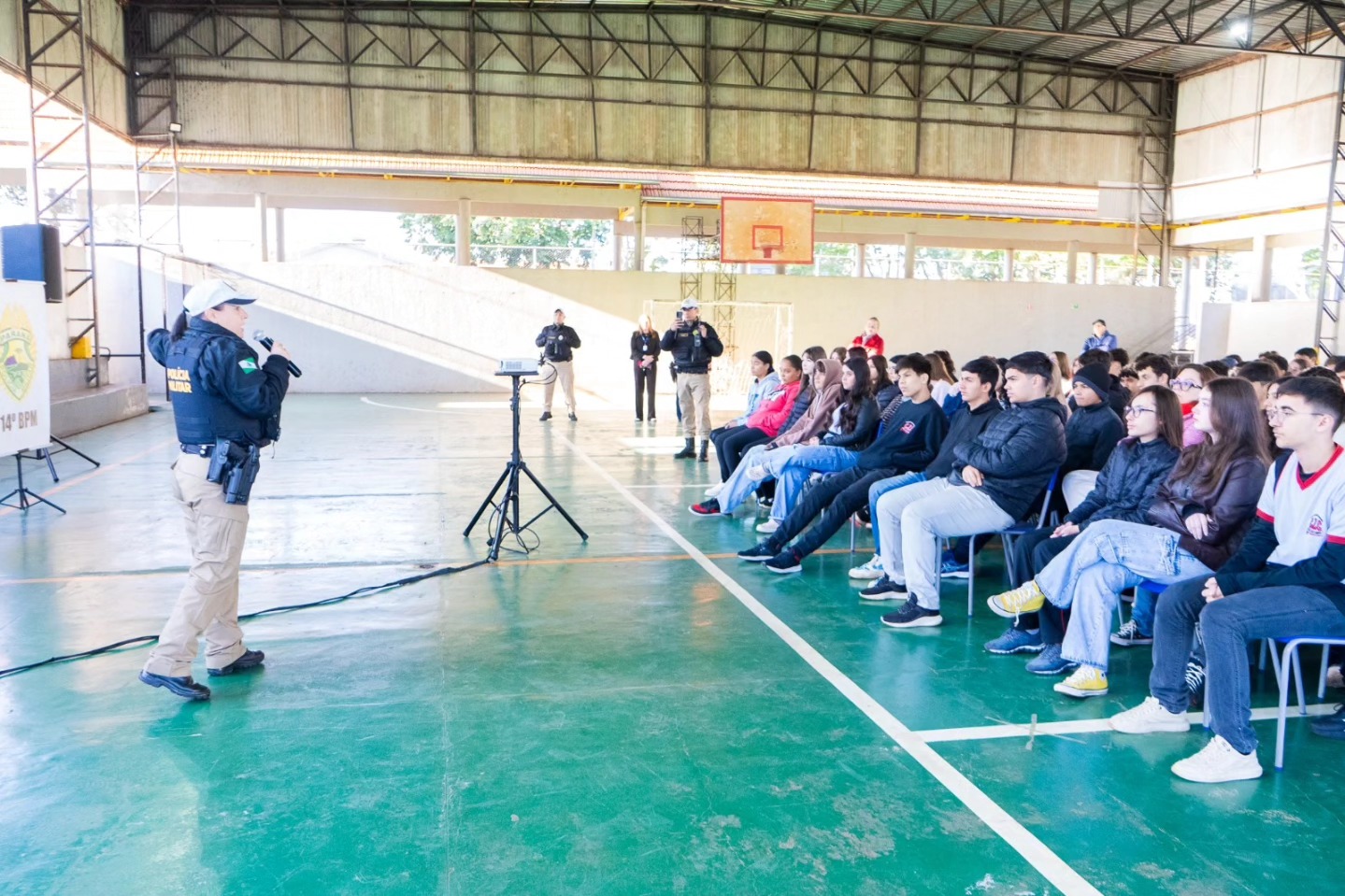 A primeira ação ocorreu no Colégio Estadual Carlos Zewe Coimbra e foi conduzida pelo cabo Juliane, que abordou a importância do respeito à sinalização viária e as regras para o uso adequado e seguro dos patinetes elétricos. Ao longo das próximas semanas, o projeto será levado aos demais colégios estaduais do município, nos turnos manhã, tarde e noite, conforme calendário definido.
