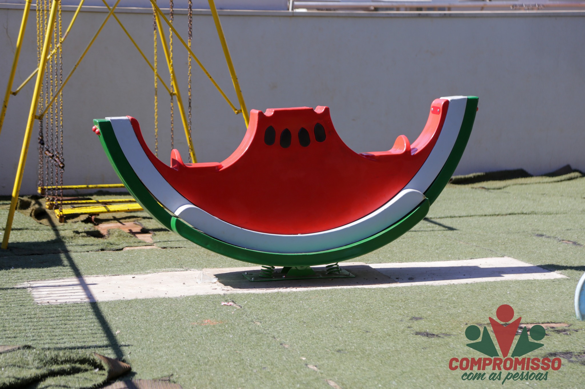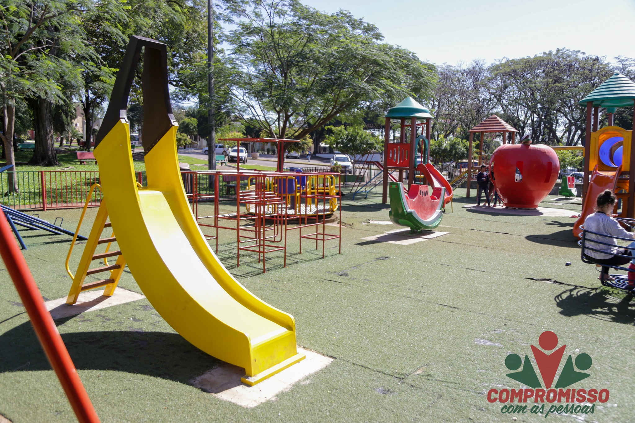 O Parquinho Infantil da Praça Eugênio Schneiders, no Centro de Missal, ganhou um reforço na diversão. Nesta semana, foram instalados quatro novos brinquedos temáticos: um gira-gira em formato de maçã, duas gangorras em formato de melancia e um escorregador em formato de banana.