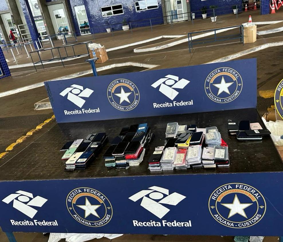 Receita Federal, apreensão celulares, Ponte da Amizade, Foz do Iguaçu, contrabando celulares, fiscalização aduana, celulares contrabandeados, ação Receita Federal, operação fronteira, smartphones apreendidos, Polícia Federal Foz, crime transfronteiriço, aduana Foz, apreensão Paraguai Brasil, combate ao contrabando