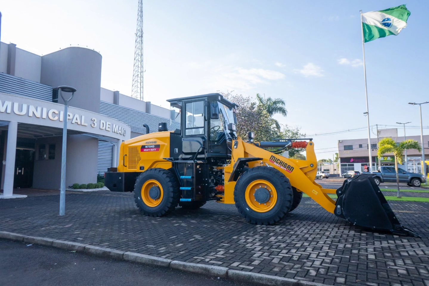 A pá carregadeira já está em operação e será integrada às ações da Secretaria Municipal de Obras e Agricultura, reforçando os serviços prestados à população.