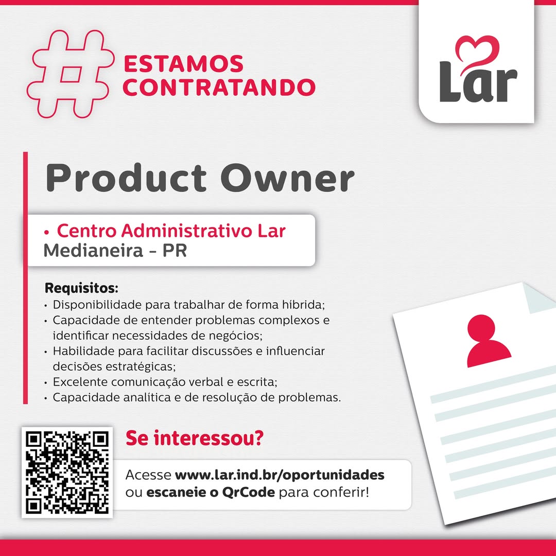 Vaga para Product Owner em Medianeira – Inscrições até 23/07 Oportunidade para Medianeira (PR): a Lar Cooperativa está com vaga…