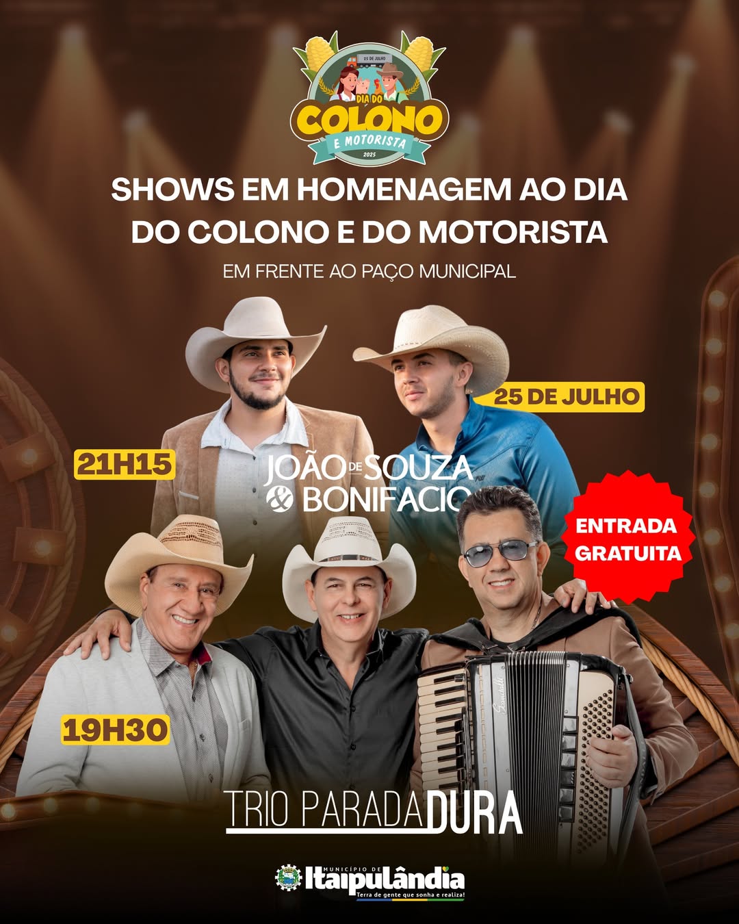 Dia do Colono e Motorista em Itaipulândia: shows e homenagens no dia 25 A Administração Municipal de Itaipulândia preparou uma…