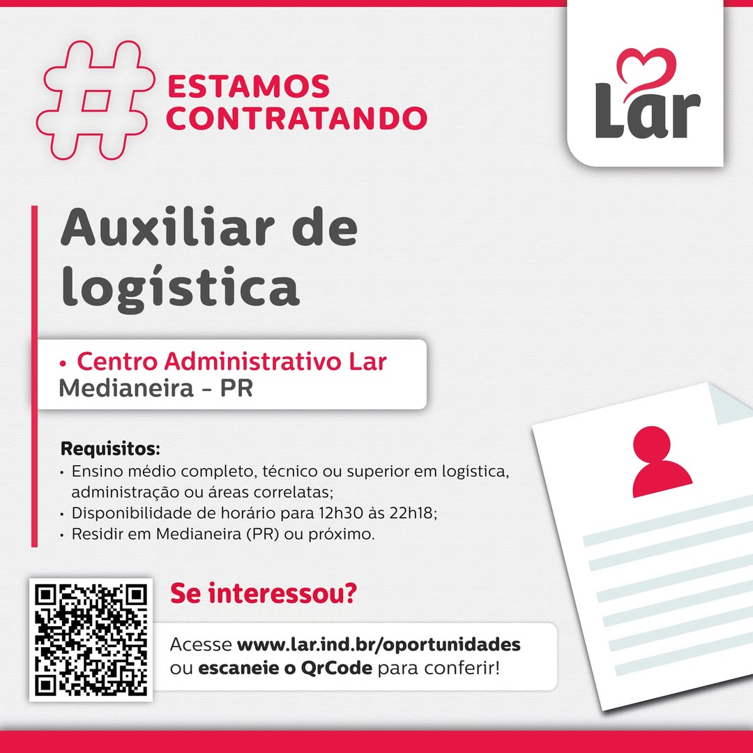 Se você está em busca de uma nova oportunidade de trabalho em Medianeira, atenção: a Lar Cooperativa está com vaga aberta para o cargo de Auxiliar de Logística, no Centro Administrativo da empresa.