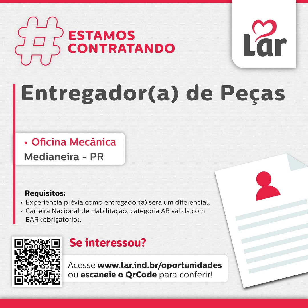 vaga em Medianeira, emprego Lar Cooperativa, entregador de peças, oficina mecânica Medianeira, oportunidade de trabalho PR, lar vagas abertas, trabalho cooperativa agrícola, seleção Lar Cooperativa, vagas julho 2025, Medianeira PR empregos, portal lar.ind.br, inscrição Lar Cooperativa, oportunidade em Medianeira, entregador PR, cooperativa agroindustrial vagas