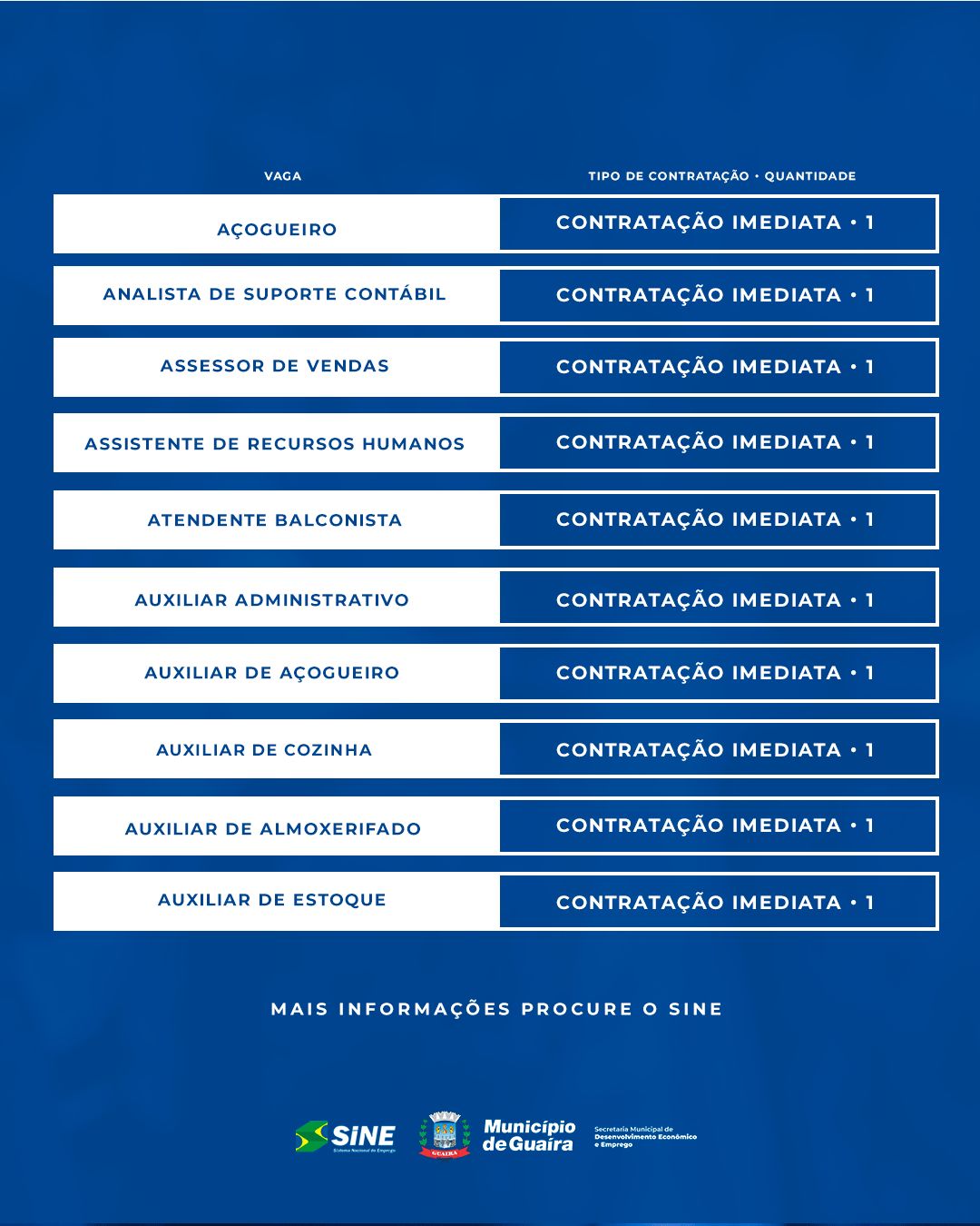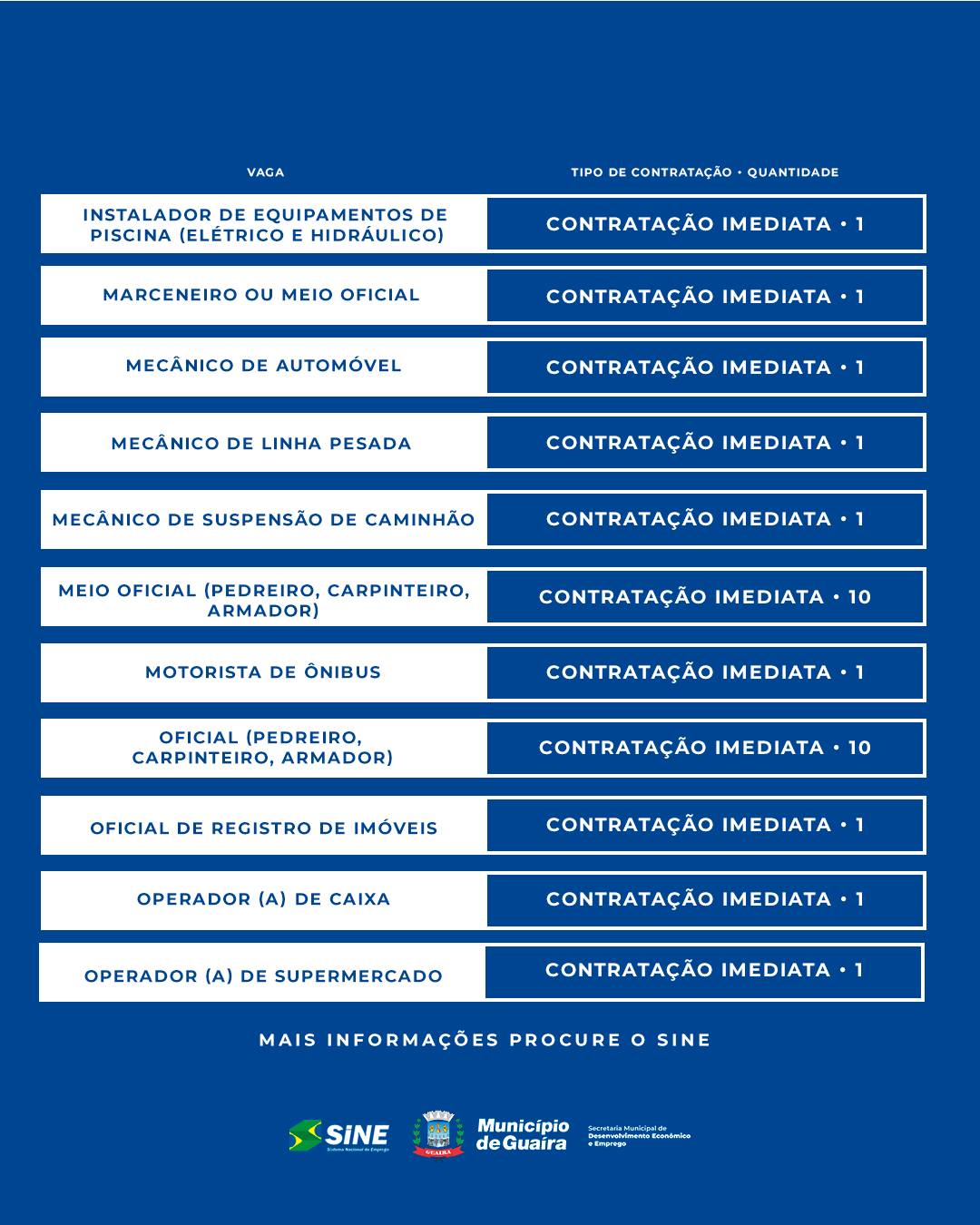 A Agência do Trabalhador de Guaíra, vinculada à Secretaria de Desenvolvimento Econômico e Emprego (SEDE), divulgou novas vagas de emprego em Guaíra disponíveis nesta semana. A ação é parte do compromisso do município com a geração de emprego e renda, por meio da intermediação entre empresas e profissionais da cidade.