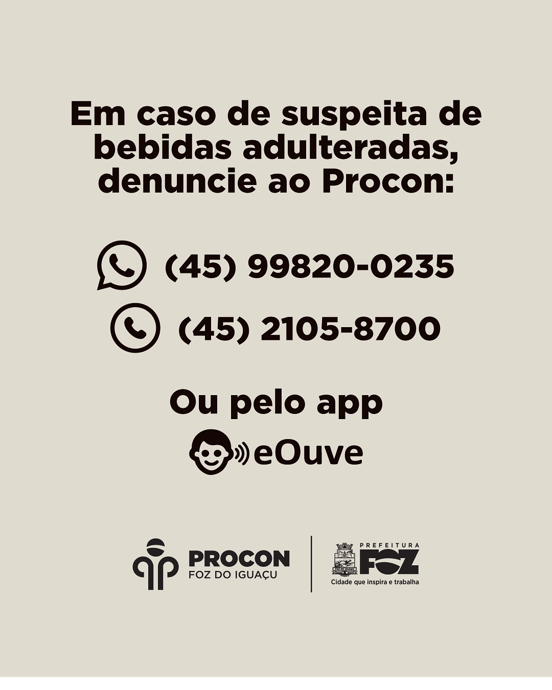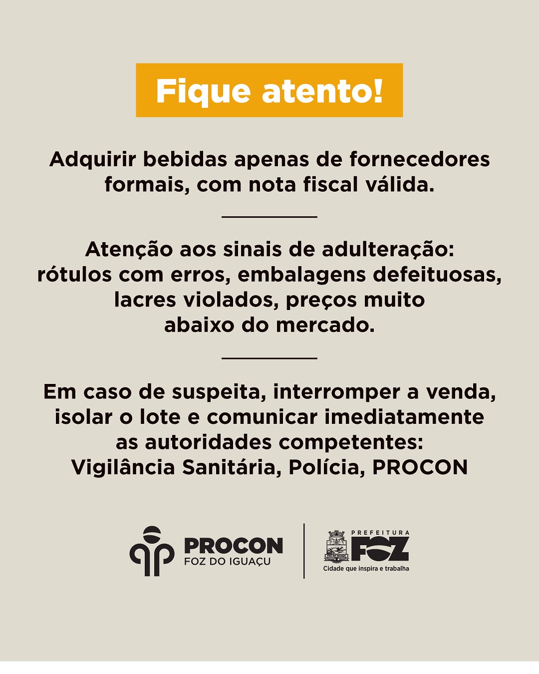 Com a aproximação de feriados e eventos, o comércio de bebidas tende a crescer — e com ele, o risco de circulação de **produtos falsificados ou adulterados**. A Prefeitura de Foz do Iguaçu, em parceria com o **PROCON, Polícia e Vigilância Sanitária**, está intensificando as ações de fiscalização e conscientização.