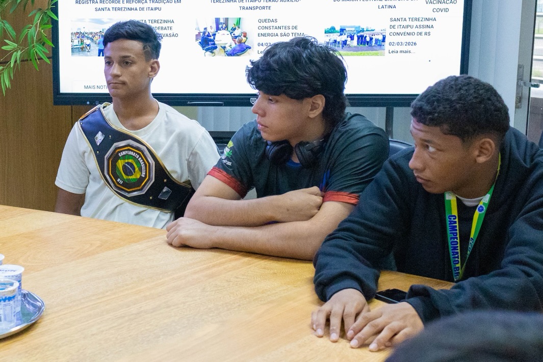 A nossa cidade tem novos campeões para aplaudir de pé! A equipe de Wrestling Santa Terezinha de Itaipu (Luta Olímpica) fez história no último fim de semana em Cubatão (SP). Enfrentando os melhores do país, nossos jovens talentos trouxeram na bagagem medalhas de ouro, classificações inéditas e muito orgulho para o município. Nesta segunda-feira (16), os atletas receberam uma homenagem especial do prefeito Bim. Descubra quem são os heróis locais que estão dominando os tatames nacionais!